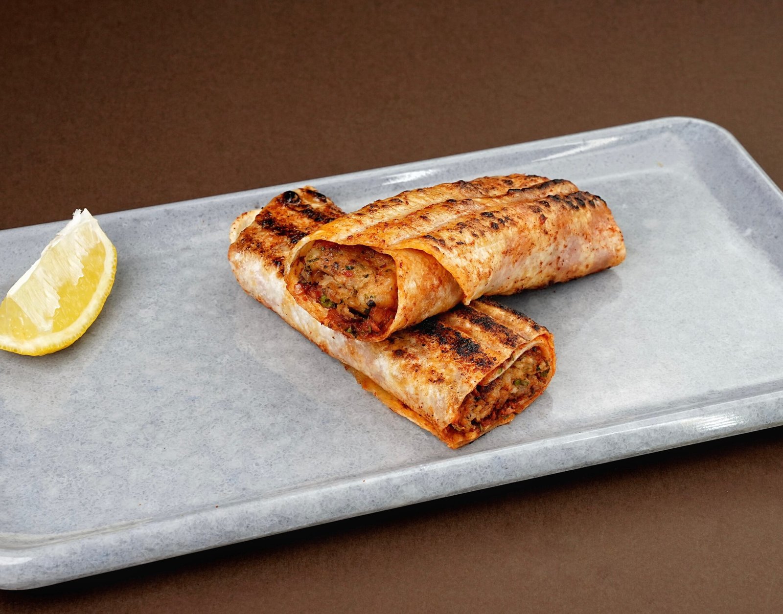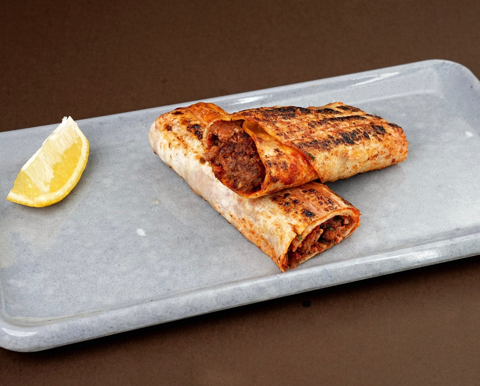 كباب آدنه من اجود انواع اللحم العراقي ملفوف بالخبز التركي ، حاد وسط ، طماطة ، بصل سماق ، كرفس ، صوص خاص