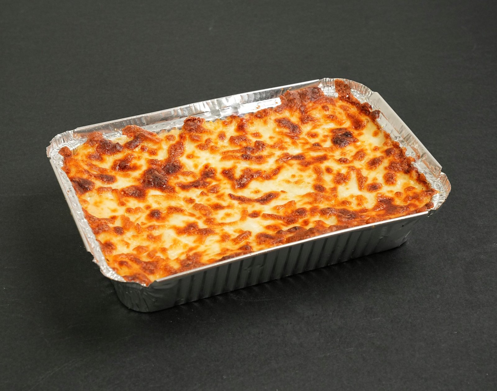 طبقات من معكرونة اللازانيا الايطالية مع صلصة الحمراء والصوص الكريمي مغطاة بجبنة الموزاريلا الذائبة